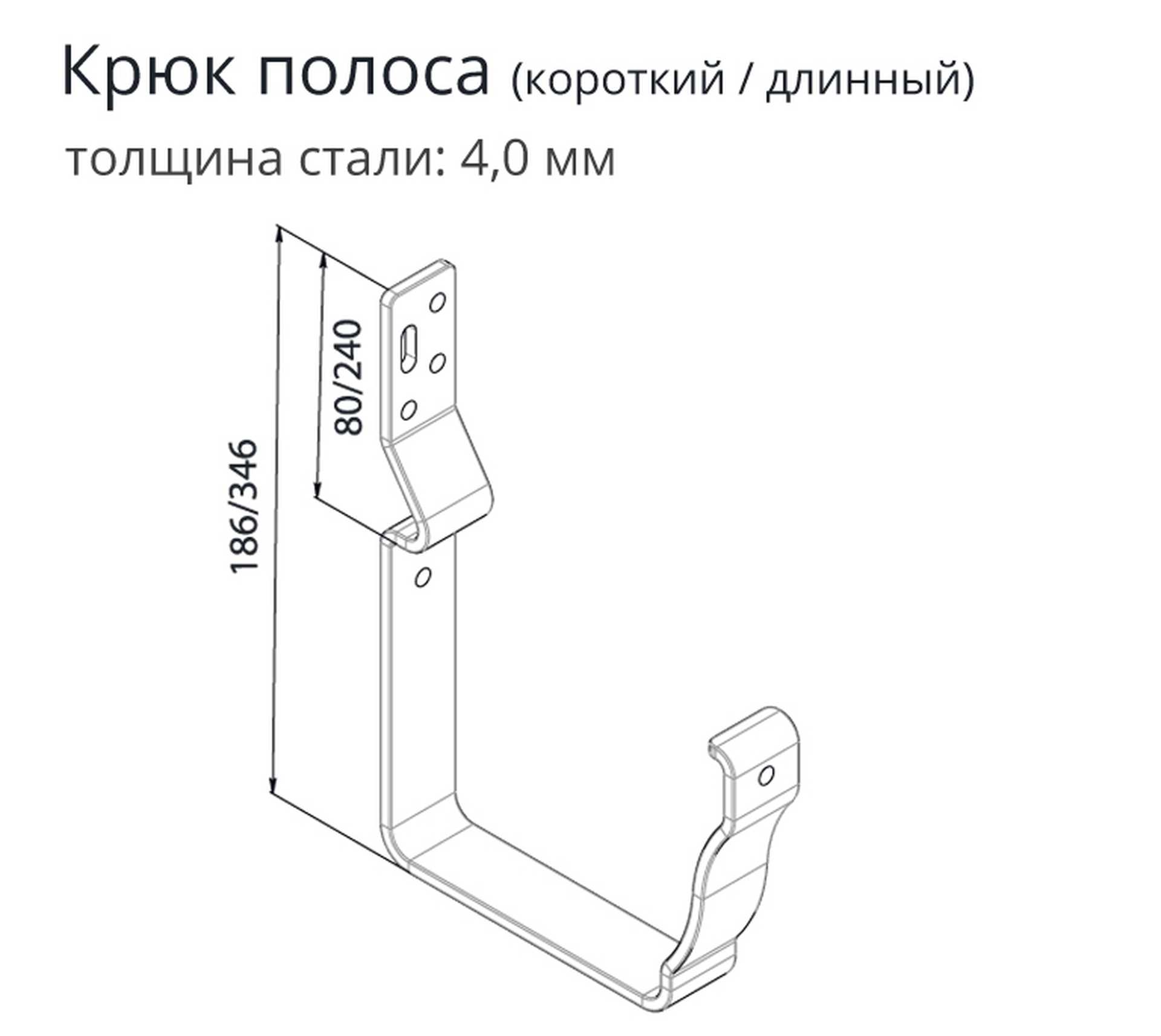 Новый крюк из полосы производится из горячеоцинкованной стали толщиной 3-4 мм с последующим нанесением полимерного покрытия, что гарантирует высокую степень защиты от коррозии.