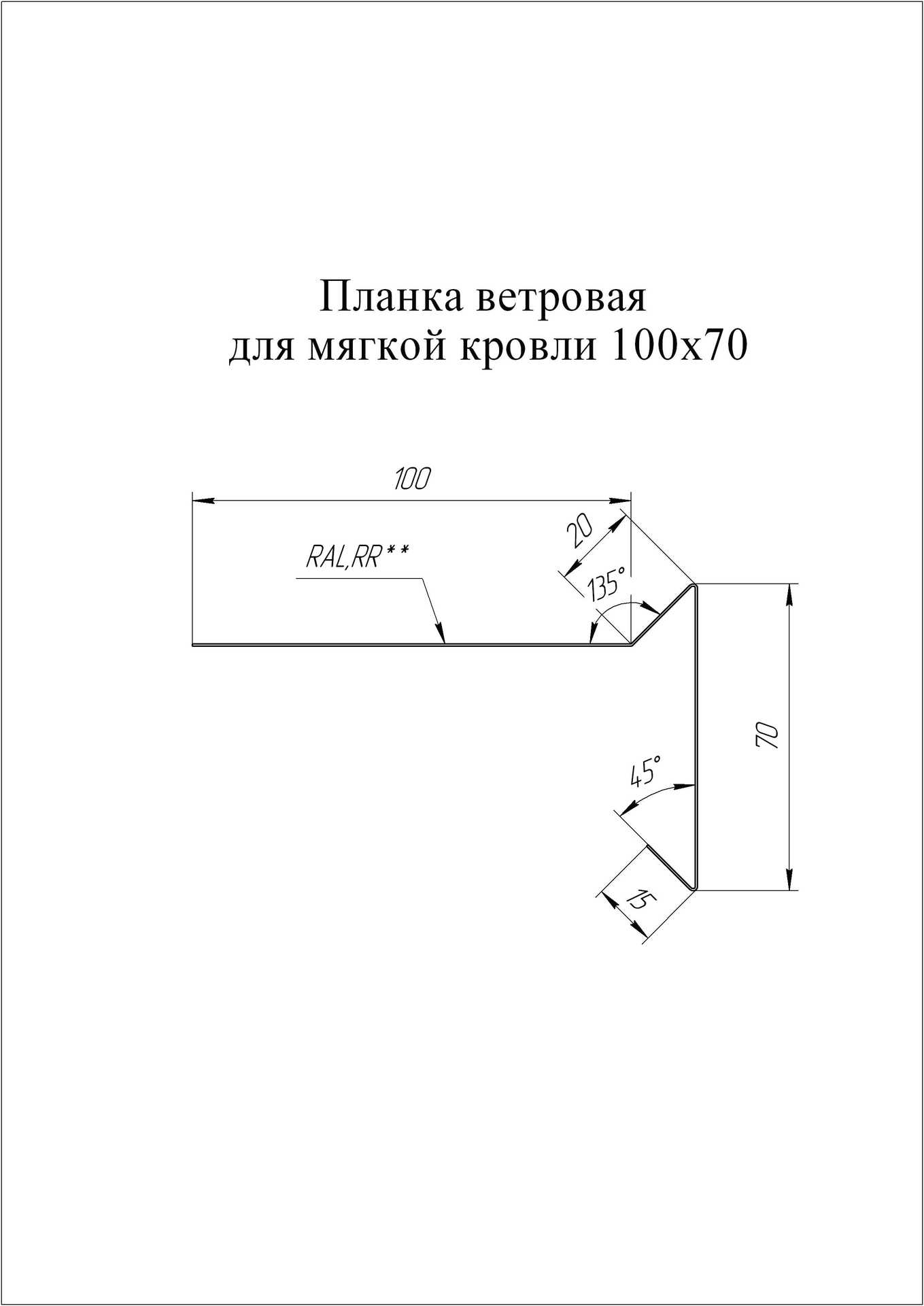 Планка ветровая д/м.кровли 100х20х70 0,45 Drap ST RAL 7016 серый антрацит